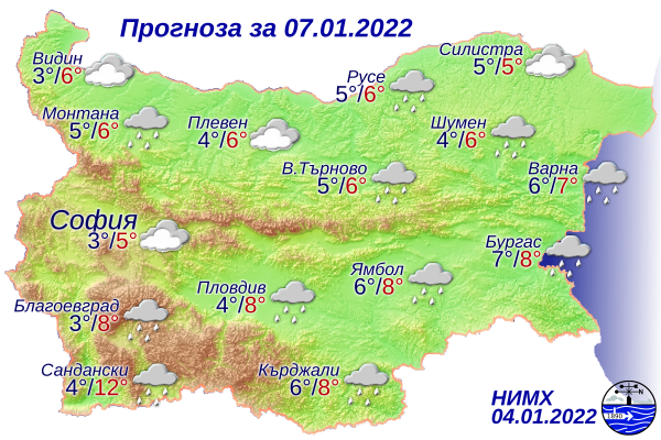 Атмосферното налягане ще се намали и ще е доста по-ниско от междинното за месеца. След ясната нощ се чака през днешния ден да доминира слънчево време. Ще духа слаб, в източните и планинските региони - сдържан югозападен вятър и с него ще се придвижва топъл въздух. Минималните температури ще са сред 1° и 6°, в София към 1°; оптималните - най-вече сред 12° и 17°, по-ниски тук-там в Горнотракийската равнина и котловините, където ще е съвсем безшумно и ще има ниска облачност или мъгла, в София - към 12°.