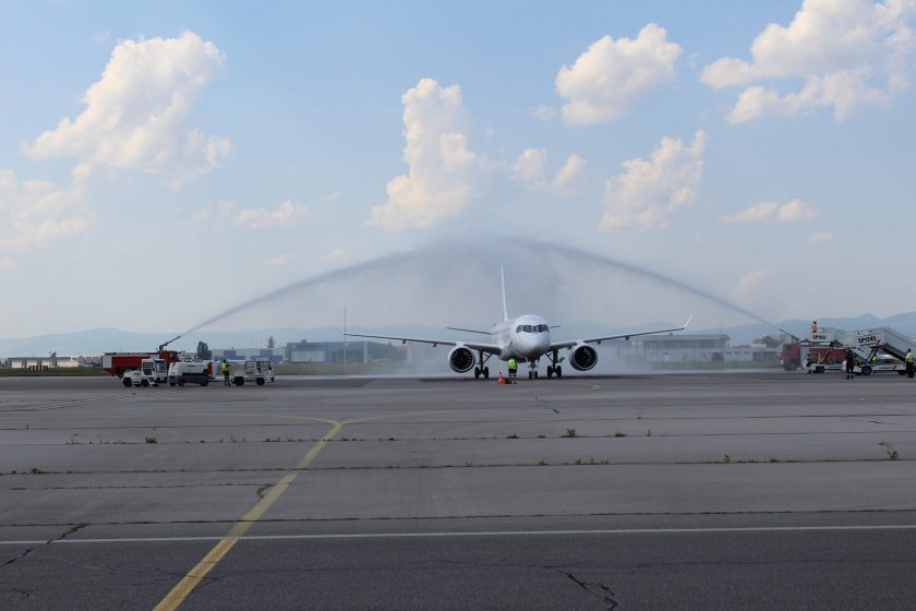Днес се организира и демонстрационният полет на първия Airbus A220-300 от София до Варна и назад. На борда на самолета бяха представители на управлението на " България Еър ", а при кацането си в столицата полетът бе посрещнат с воден салют на Летище София.
