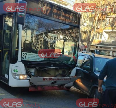 Автобус и кола са се сблъскали в центъра на Пловдив, научи GlasNews.bg.