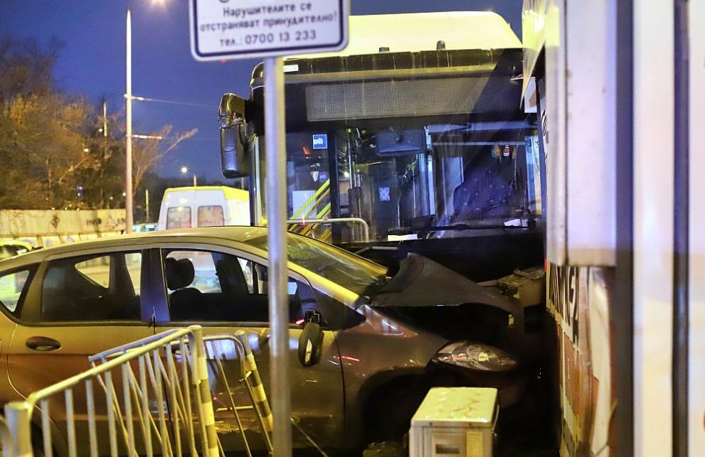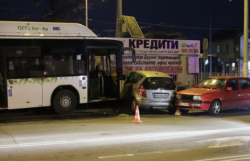 Автобус на градския превоз в София навлезе в насрещното и удари три коли , опустоши и два павилиона на тротоара, заяви.
