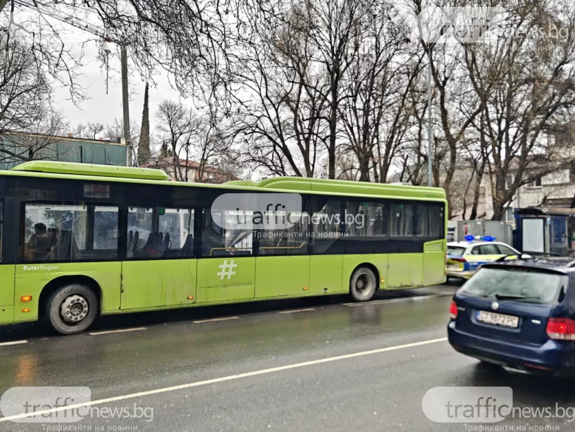 Пътник падна в автобус в Пловдив след рязко спиране СНИМКИ