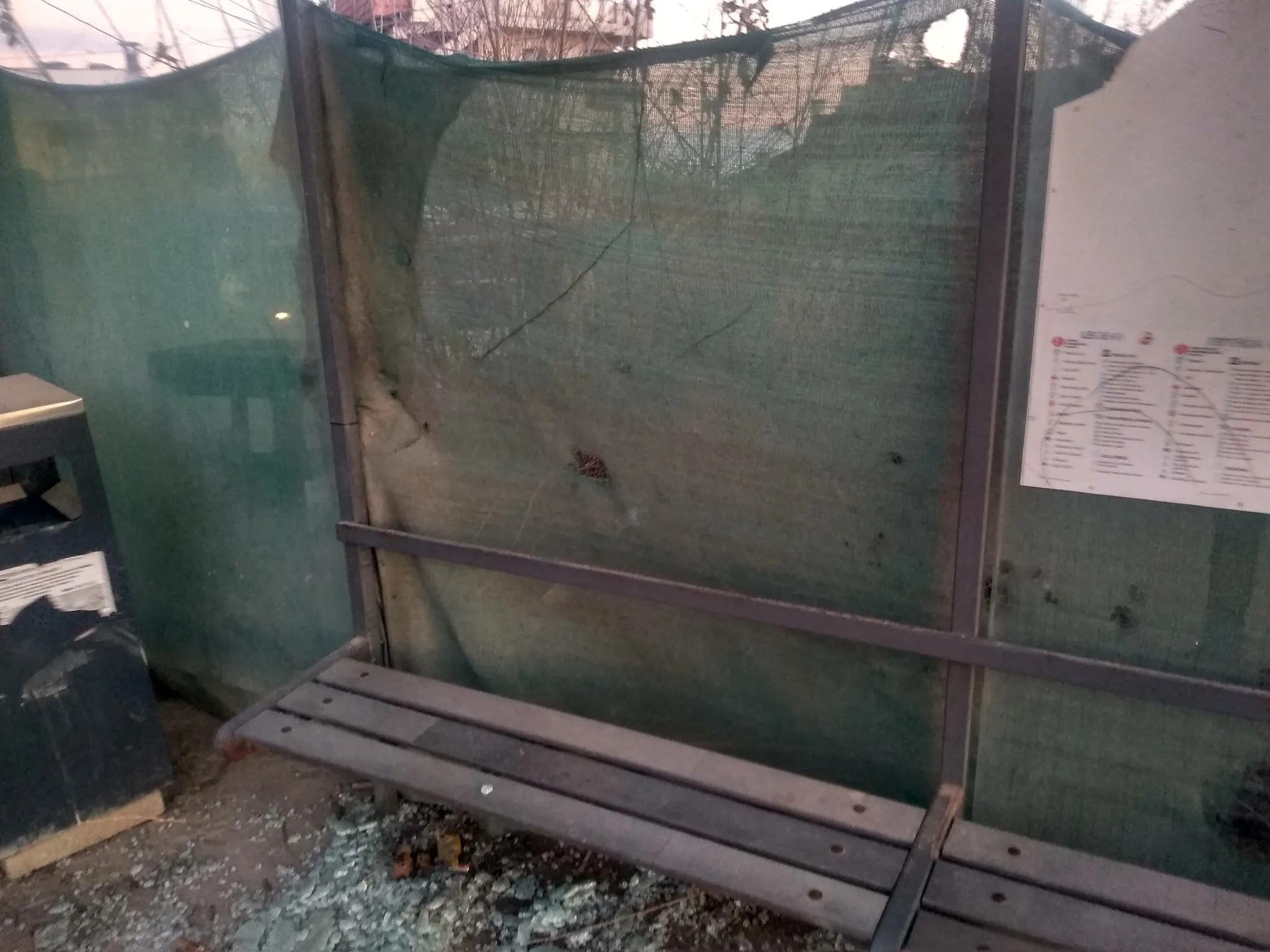 Автобусна спирка във Варна е в окаяно положение и провокира отвращение измежду жители, откакто в обществените мрежи бяха оповестени фрагменти от мястото. От фотосите ясно се вижда, че преградните стъкла на спирката са изцяло счупени, а подът е посипан с части стъкло, което основава риск за чакащите пасажери.