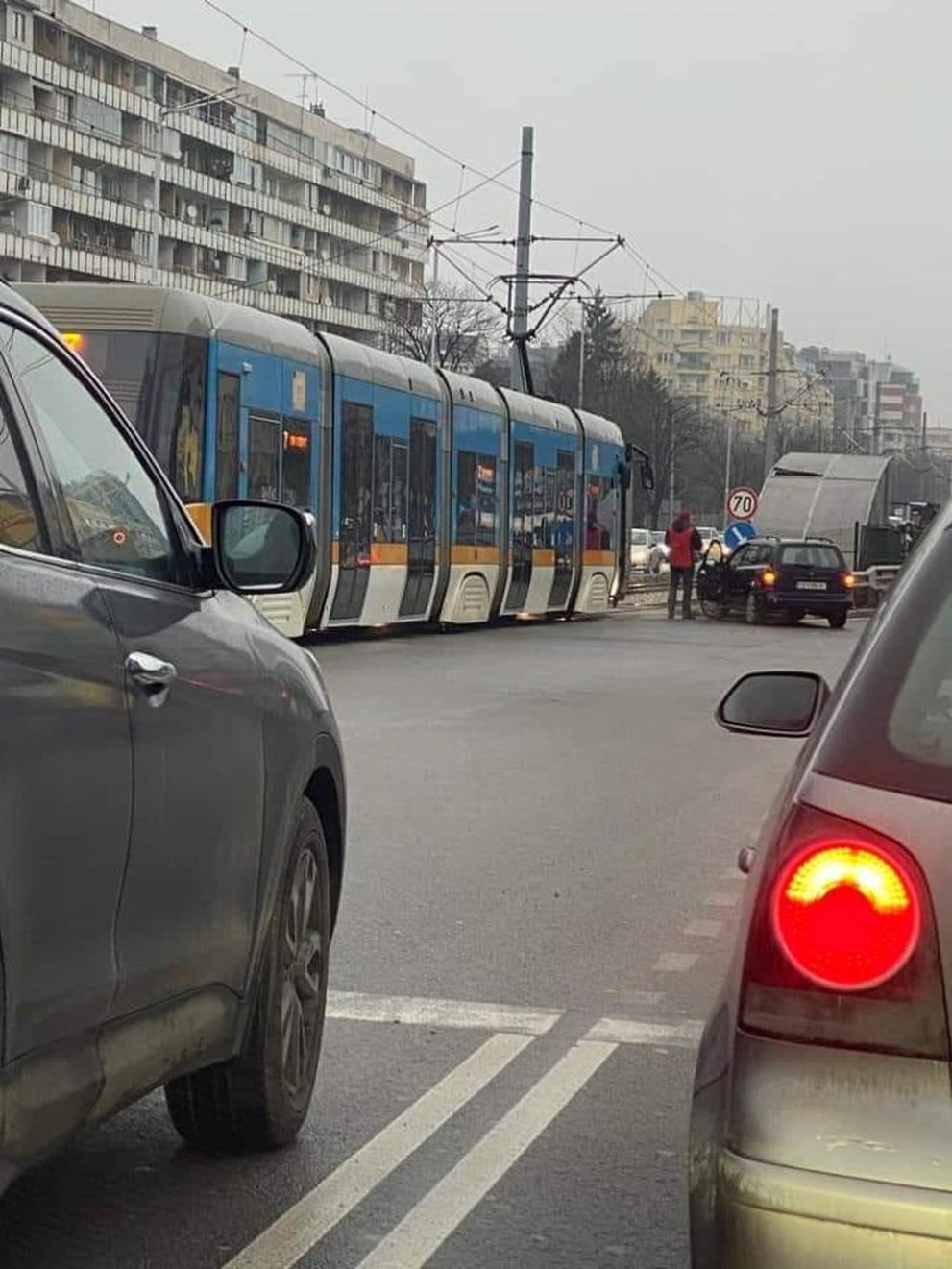 Автомобил е аварирал на столичния бул. " България " . Това научихме от група във Фейсбук.
