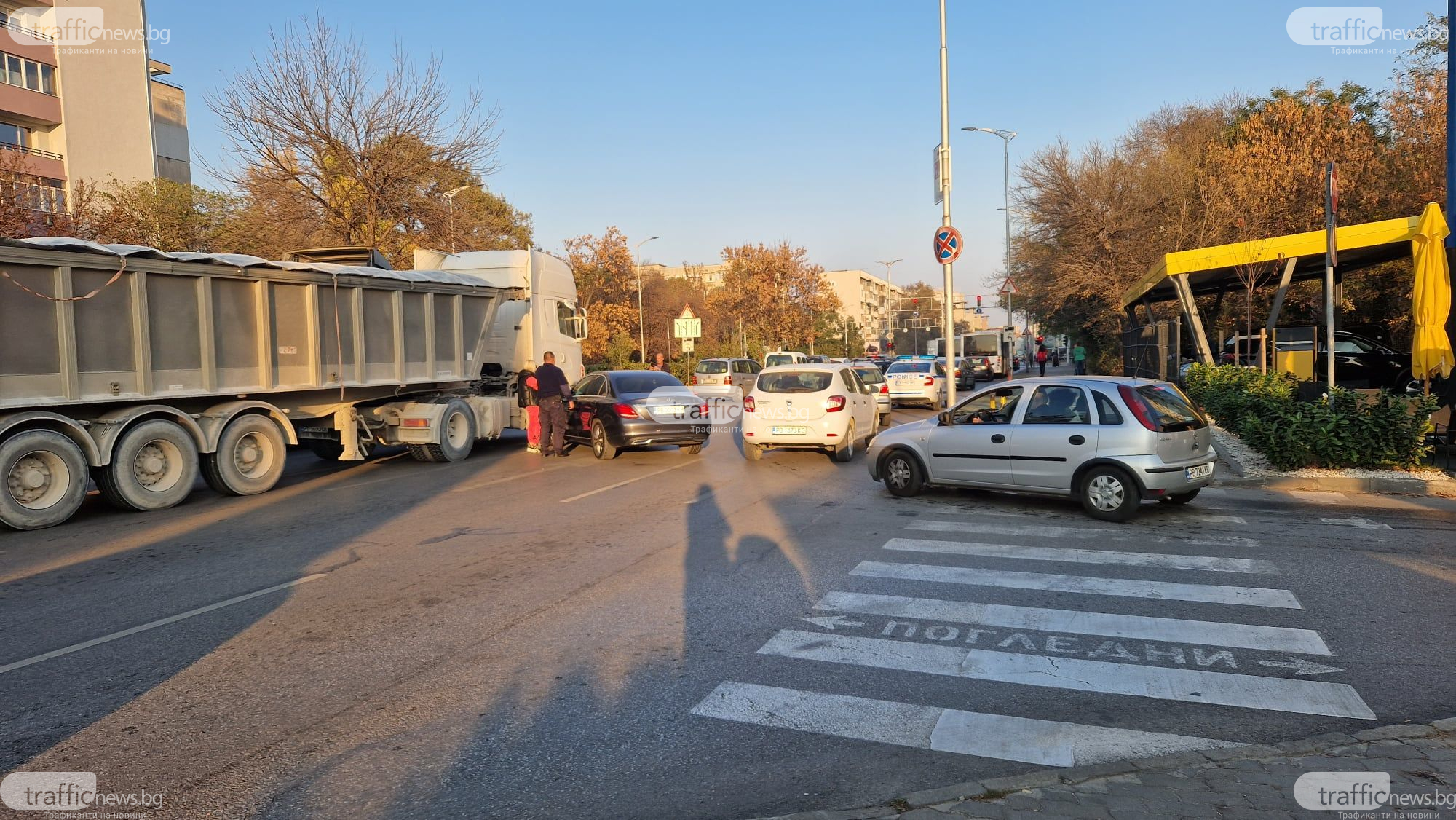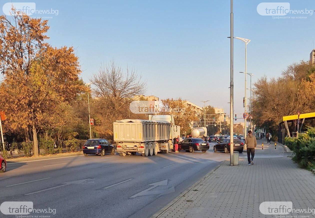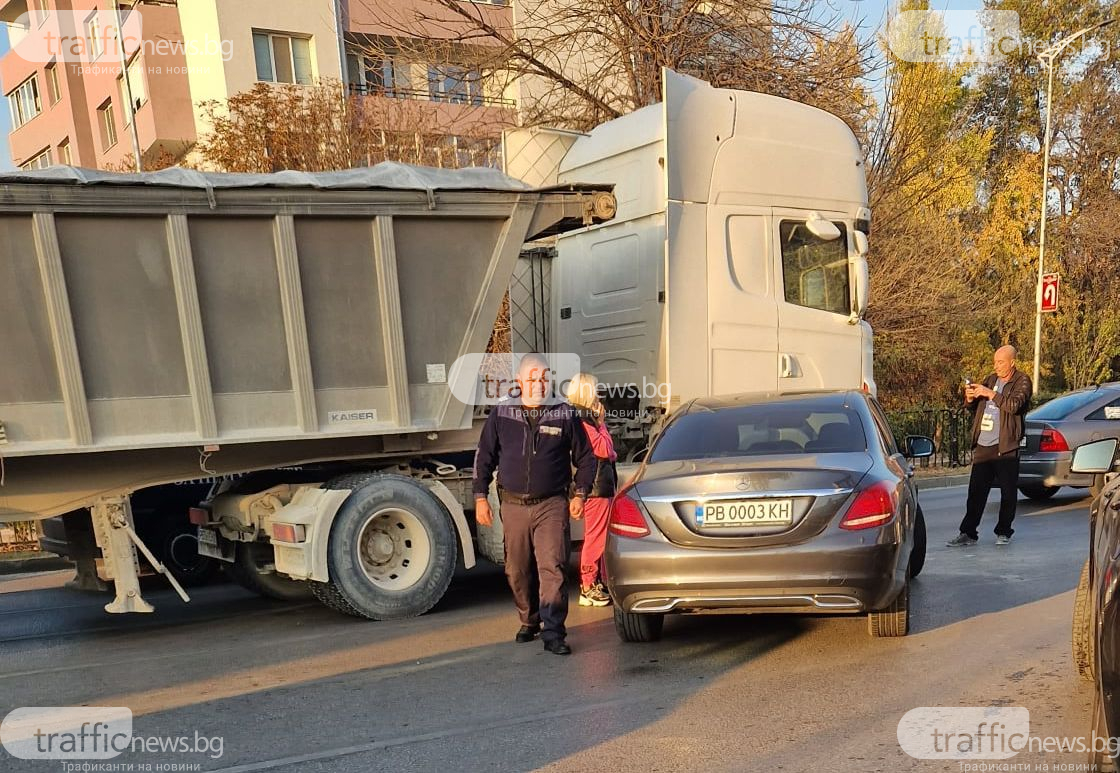 Автомобил " Мерцедес " се удари в камион на бул. " България " в Пловдив.