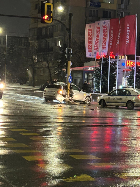 Кола се заби в стълб в София* СНИМКИ