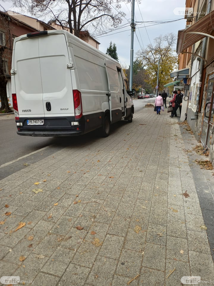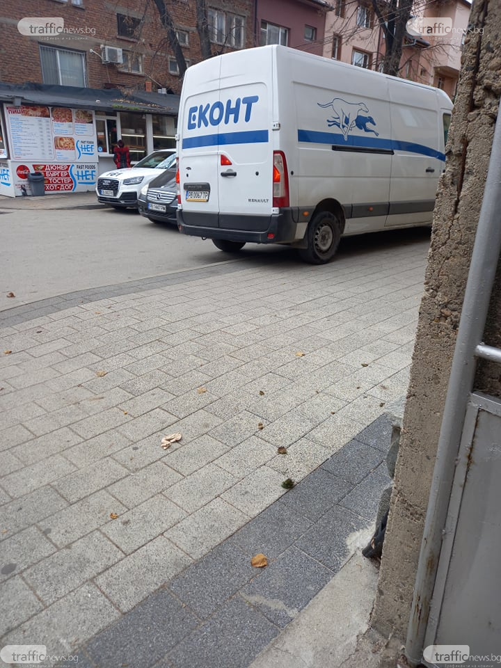 Припомняме, че съгласно Наредбата на община Пловдив се позволява престой и паркиране на моторни транспортни средства с позволена оптималната маса до 2,5 тона върху тротоарите, единствено на избраните от притежателите на пътя или администрацията места, паралелно на оста на пътя, в случай че откъм страната на постройките остава разстояние най- малко 2 метра за прекосяване на пешеходци .