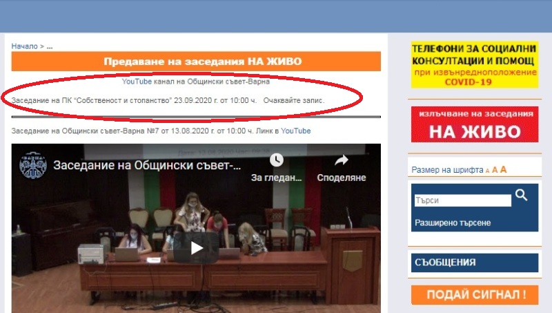 Тази опция през днешния ден също беше отнета. Вместо предстоящото директно лъчение на съвещанието на една от най-важните общински комисии, „ Собственост и стопанство “, в уеб страницата на локалния парламент беше пуснато известие, че публицистите и жителите ще могат да видят запис на станалото в комисията. Обяснение за какво не се излъчва директно няма.