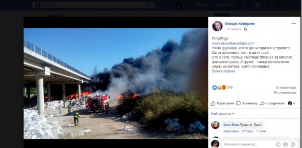 Няма страна, която да си гори автомагистралите. Да се фукляви с тях - и да ги гори. Ето и в този момент: горящо бунище блокира за няколко дни автомагистрала „ Струма “ - какъв превъзходен облик на Батака, който обитаваме