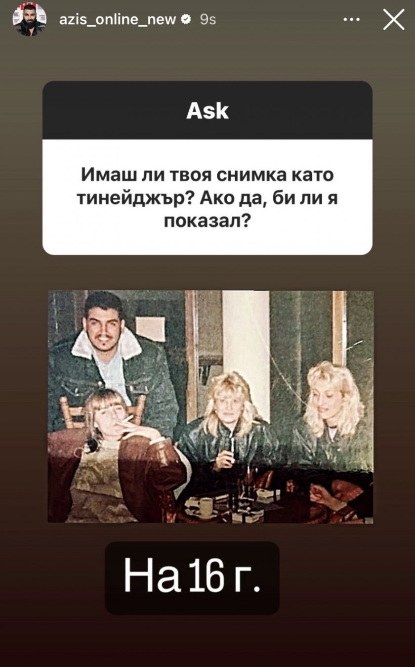 Азис бе предизвикан от свои фенове да покаже фотография то тийнейджърските си години. Мнозина смятаха, че изпълнителят на " Хабиби " няма да обърне внимание на тази провокация и няма да има храброст да се покаже от това време.