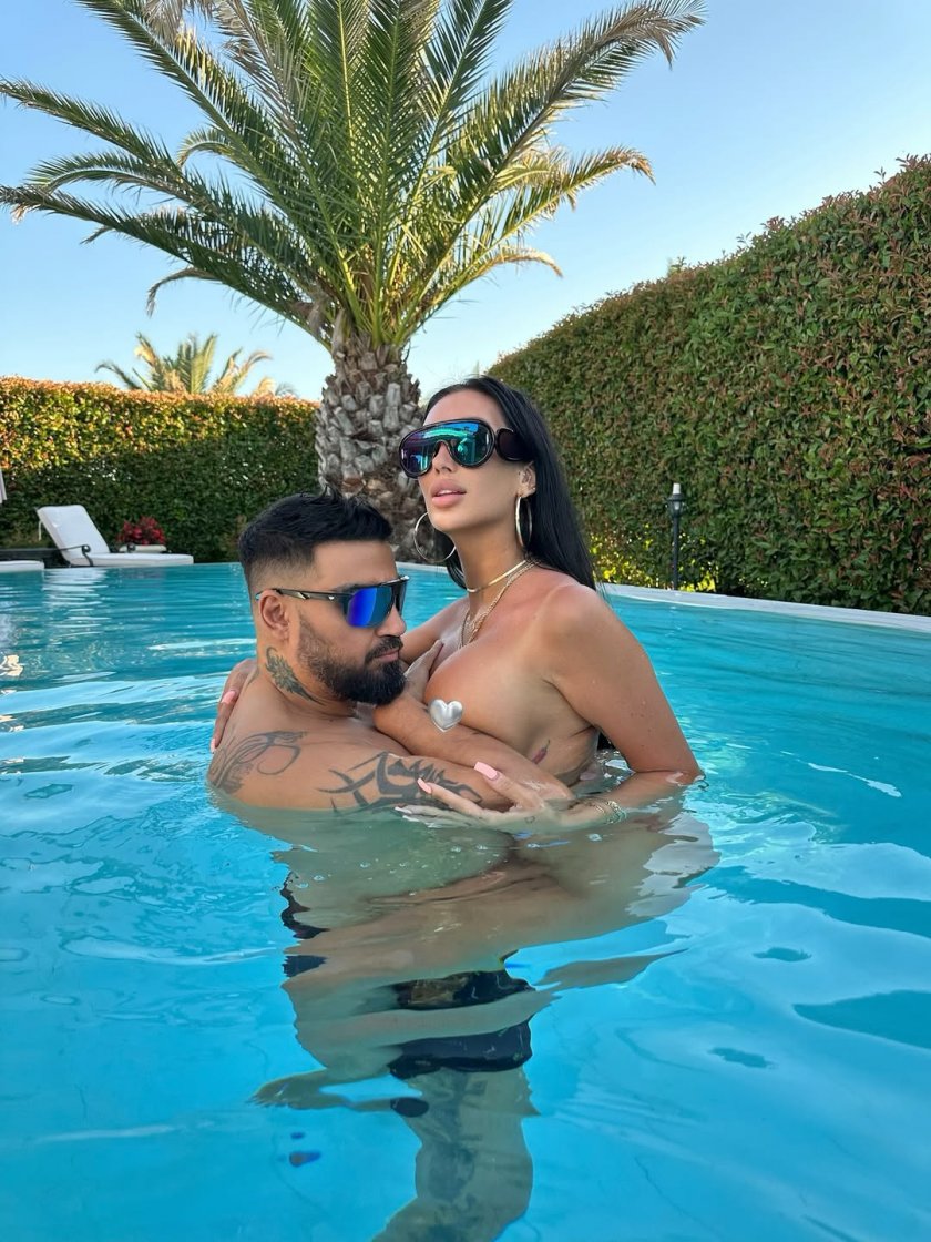 Изпълнителят пусна горещи фотоси от Слънчев бряг, на които се прегръща с полуголата си колежка. Попфолк певицата набра огромна известност след присъединяване си в последния сезона на „ Биг Брадър “.