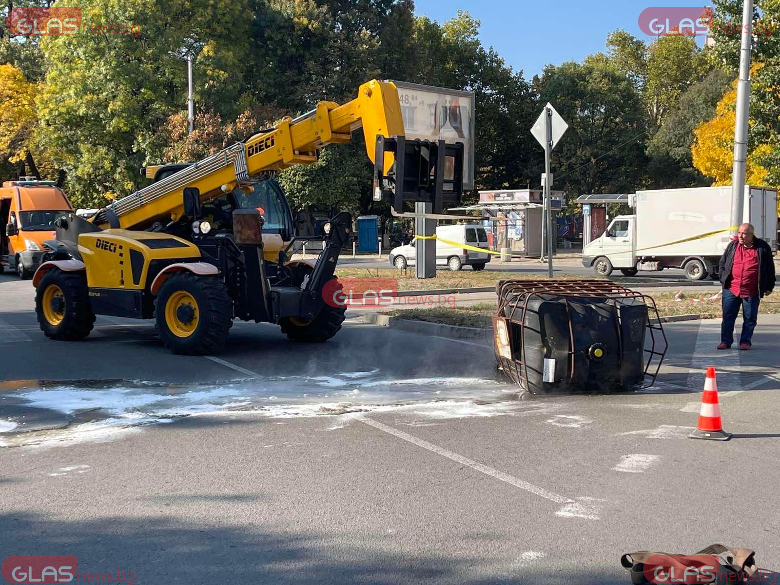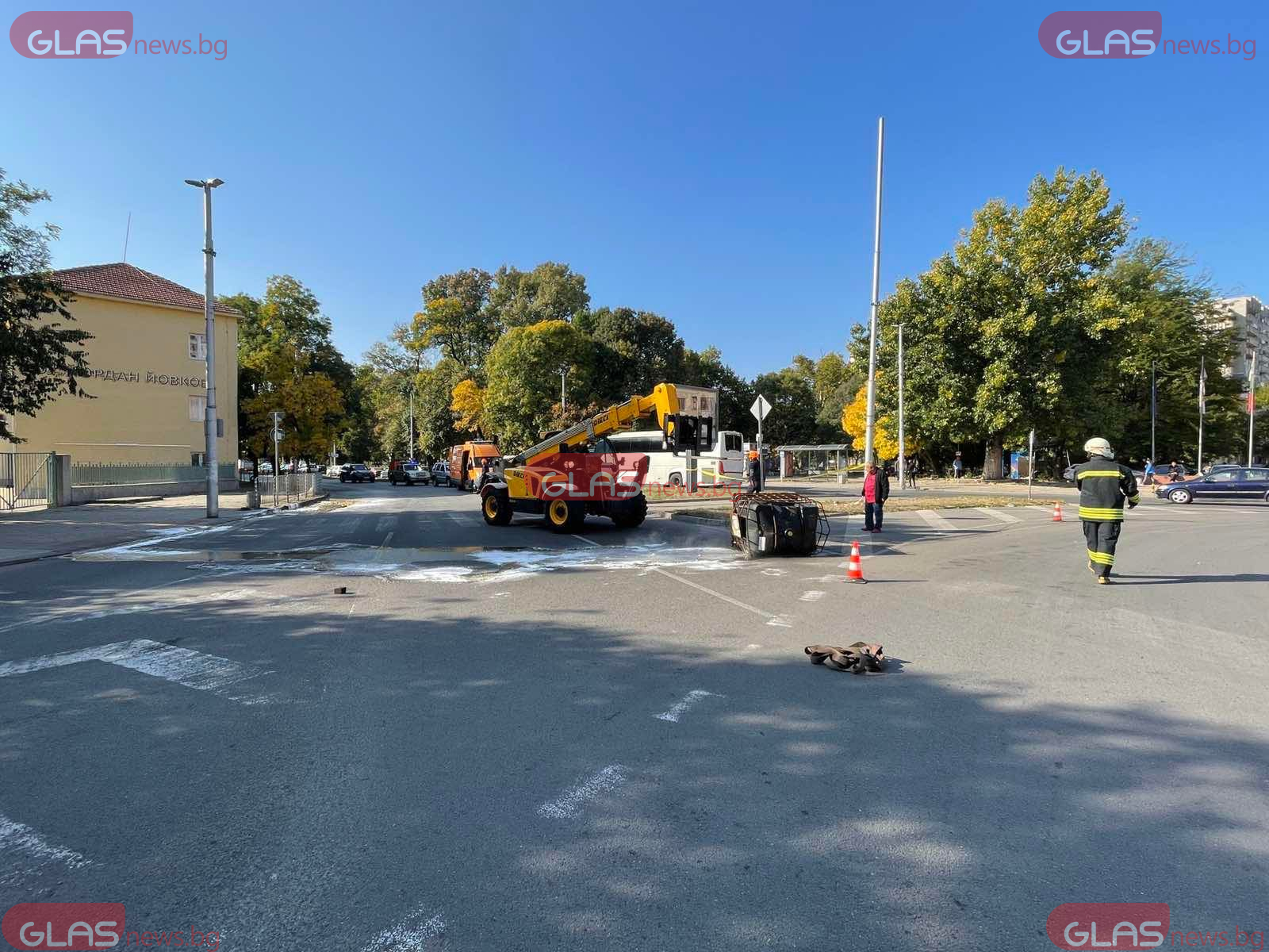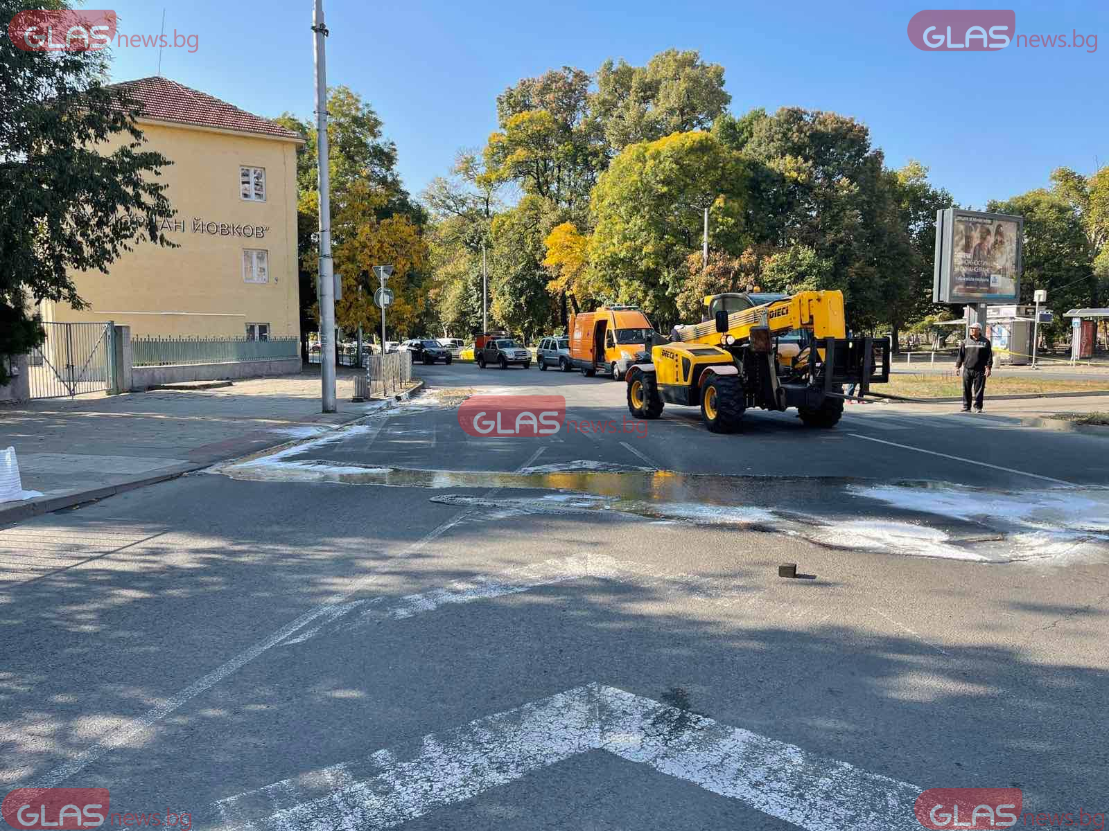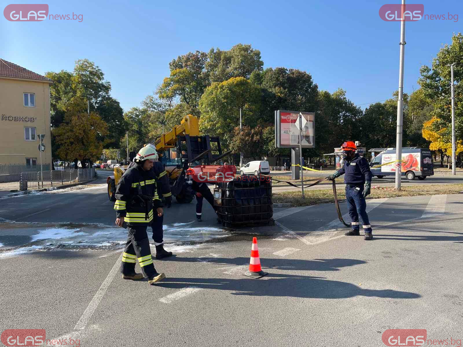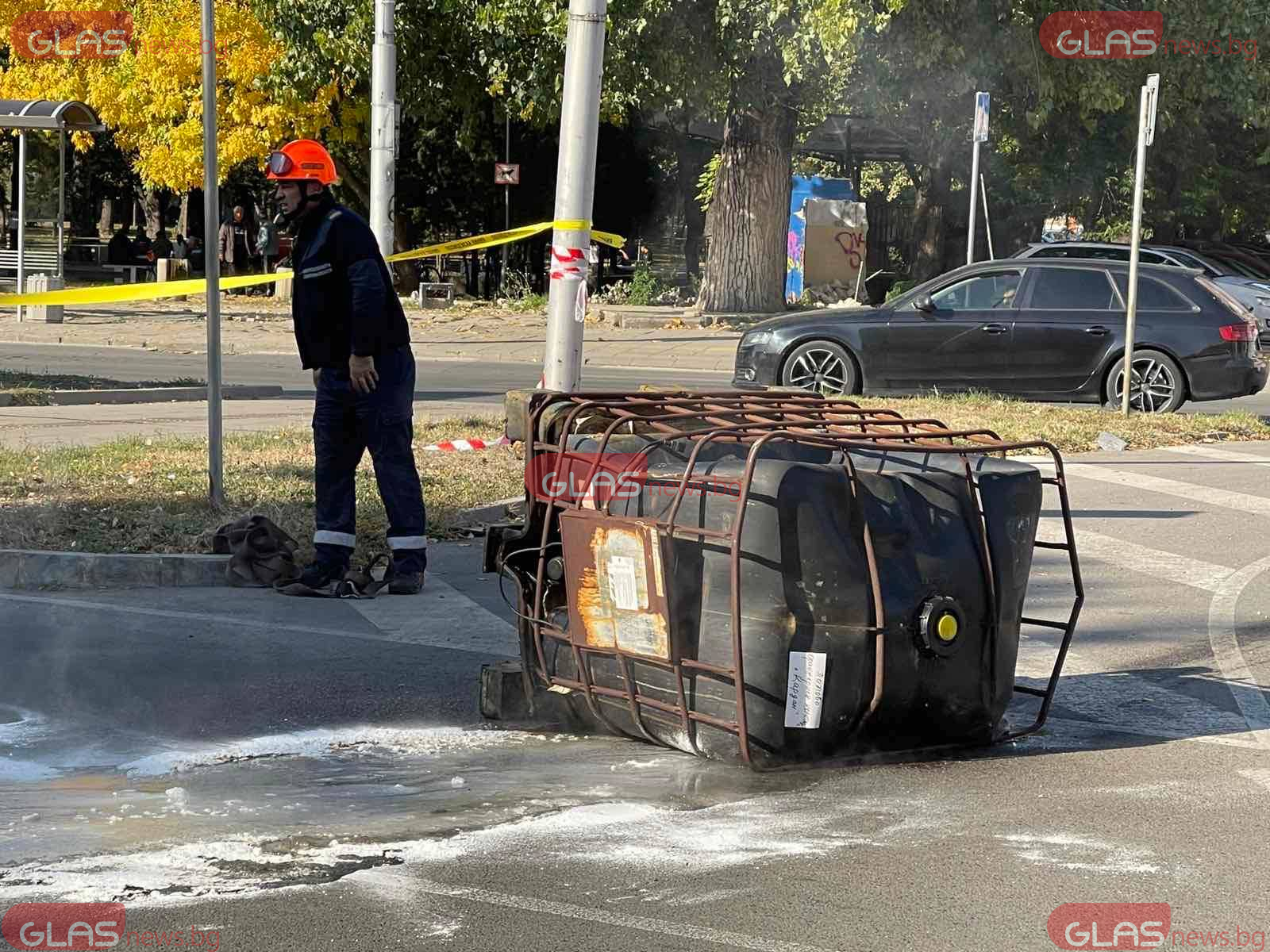 Азотна киселина е разлята на пътното платно покрай кръговото сред булевардите " Дунав " и " Цар Борис III Обединител ". Инцидентът стана причина за прекъсване на придвижването в сектора, разбра GlasNews.bg.