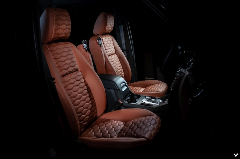 Преобразяването на автомобила включва замяна на пластмасовите панели отвътре на вратите със особено селектирано парче естествена амбойна. Воланът и елементи от централната подпора също са преобразени със същият материал. Шарката на дървото е определена съгласно текстурата на кожата на седалките, тъй че хармонията в купето да се подсигурява освен от удобството, само че и от естетическо комбиниране на материалите. Захабената черна кожа е сменена с първокласна такава, в цвят " Коняк ", а формата на релефа е особено основана за плана. Потъмнелият таван и плата на сенниците са сменени с алкантара, а дръжките са облечени в тъмна кожа и пришити с забележими шевове – една от запазените марки на Vilner.