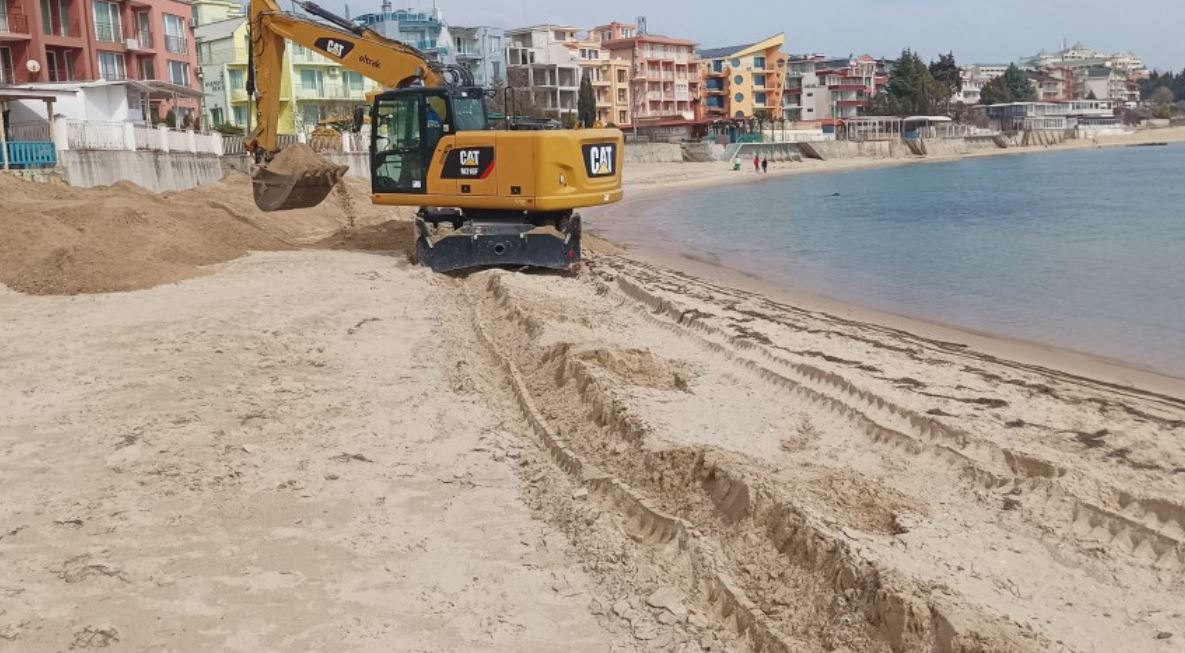 Багер копае плаж Аурелия в Равда, община Несебър.