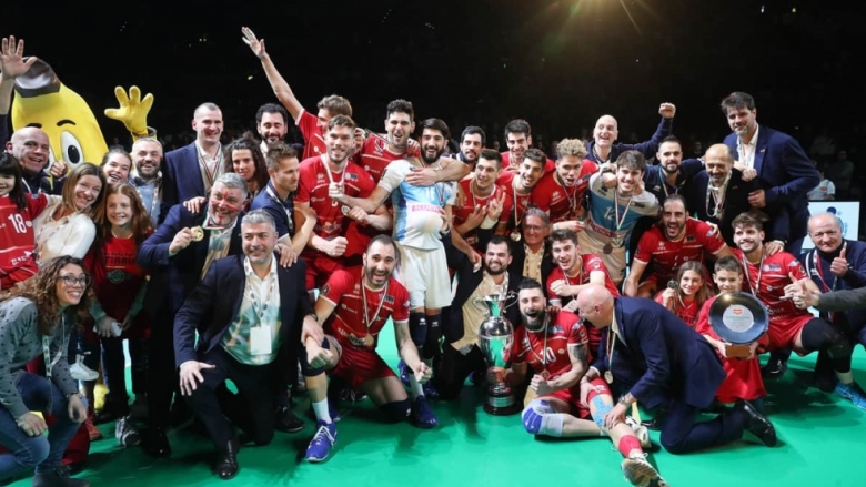 Газ Сейлс (Пиаченца) се наложи над Олимпия (Бергамо) с 3:2 (25:20, 22:25, 17:25, 25:22, 15:11) във финала на конкуренцията, а звездата Алесандро Фей бе топреализатор с 31 точки (3 блокади). Диагоналът стана справедливо MVP на срещата.