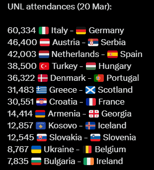 В прилежаща Гърция 31 хиляди души изпълниха „ Йоргос Караискакис “ в Пирея, а на Югоизток от нас – в Истанбул, 38 500 бяха очевидци на огромната стъпка на Турция за класиране в Лига А на Лигата на нациите и успеха с 3:1 над Унгария.