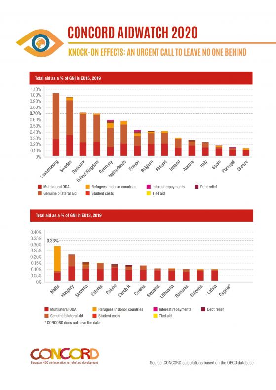 Това сочи годишният отчет „ AidWatch 2020 ”, направен от CONCORD - най-голямата европейска конфедерация от неправителствени организации, работещи в региона на развиването, част от която е и Българската платформа за интернационално развиване (БПМР). Докладът събира на едно място рекомендациите на гражданските организации към европейските институции и страните членки в използването на правилото „ никой да не бъде зарязан “ в изискванията на пандемията от КОВИД-19.