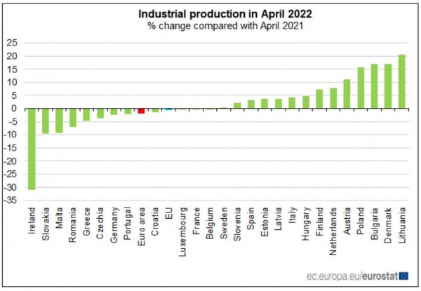 " Това е повишаване в действително изражение - т.е. количествено нарастване на производството след изчистване на резултата на инфлацията. По-рано тази седмица бе регистриран растеж в номинално изражение на износа с 29.8% за април (след 39% през март) по отношение на същия интервал на 2021 година, който надвишава показателя на цени за експорт (увеличили се с 22.6% и 25.7% за тези месеци).