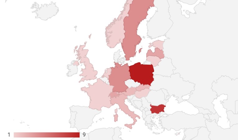 Според данните в регистъра най-вече хванати съветски шпиони за това време има в Полша. През предходната година там са арестувани за шпионаж седем души, измежду които публицист, служител и трима бизнесмени. През 2021 година пък е бил задържан Януш Ниедзвиецки, който управлява крайнодясна партия в Полша с ползи до тези в Кремъл.