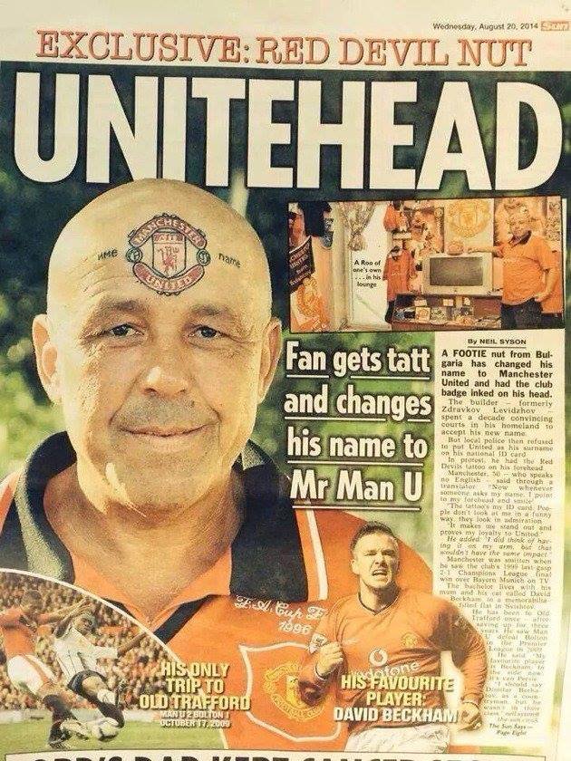 Свищовлията бе воин на репортаж в най-тиражния британски вестник - таблоида " Сън ", който отдели цяла страница на историята на българина, трансформирал името си от Здравко Левиджов на Манчестър Юнайтед