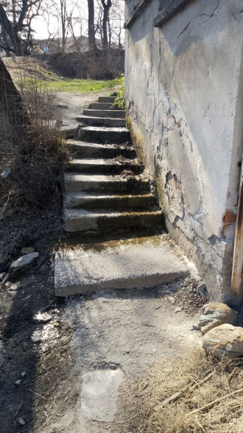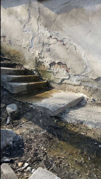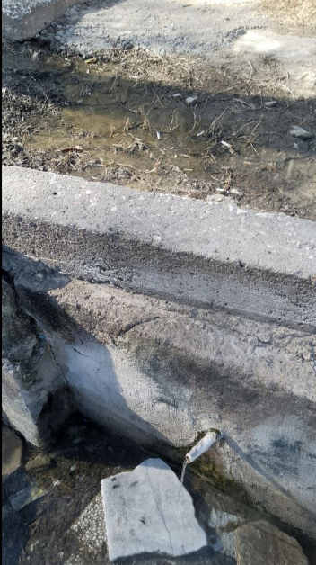 Положението към " чешмата " (то чешма съвсем няма, от една пластмасова тръбичка църцори тънка струя) е трагично. Над самата тръбичка има заблатено място и не е несъмнено дали мръсната вода не прониква и в нея. Отгоре, по стълбите, е избила вода, самите стълби към този момент са жабясали...