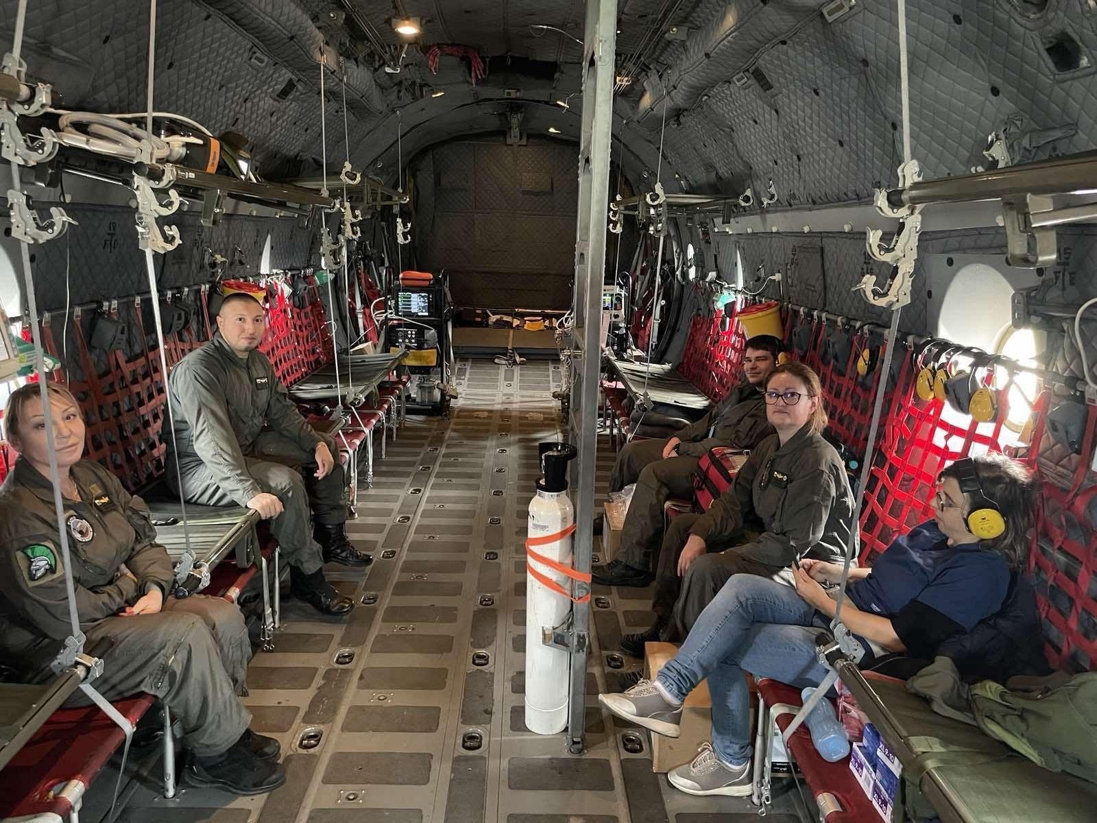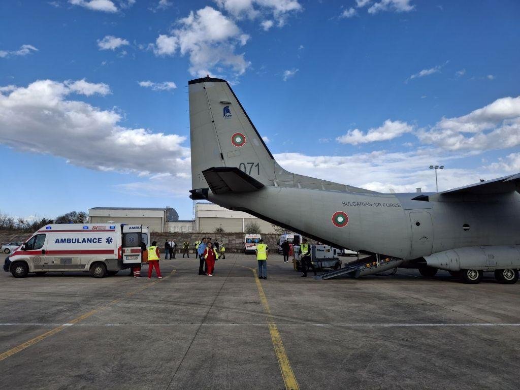 Българските Военновъздушни сили качиха ранените за превозване с полет за София и други градове на страната. Снимка: Правителствена осведомителна работа
