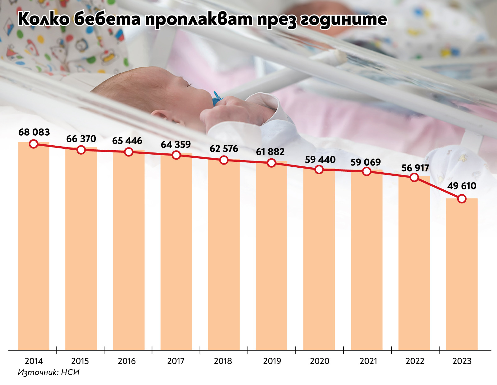 За първи път по-малко от 50 хил. бебета се появили за година у нас