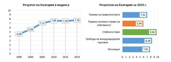 Резултатът на България е свързан от представянето на страната в петте изследвани сфери на икономическия живот: