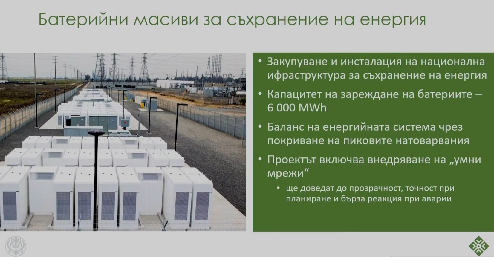 Другият нов план в Плана за възобновяване и резистентност е за създаване на акумулатори за предпазване на сила. Mediapool към този момент. Капацитетът на зареждане на батериите се възнамерява да доближава общо до 6000 мегаватчаса . Вицепремиерът Асен Василев направи съпоставяне със съществуващи сега мощности и уточни, че това дефакто е България да разполага с още един ПАВЕЦ.