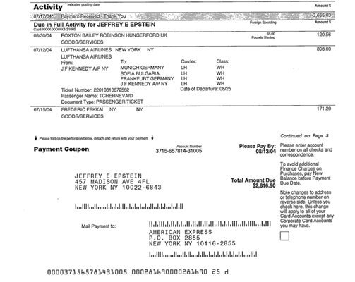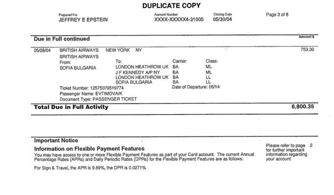В документите има два самолетни билета от лятото на 2004 година, които Епстийн е закупил, а пътничките са с български имена, като и в двата маршрута участва София.