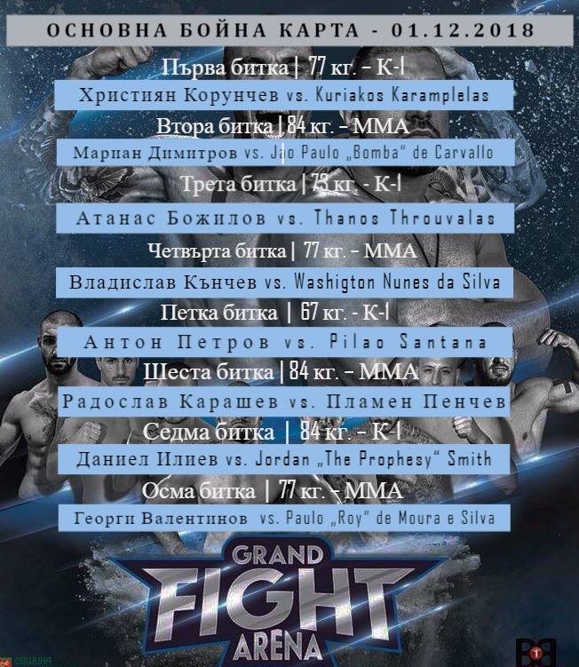 Българската MMA звезда – Георги Валентинов, ще има нов съперник в първото издание на новата бойна верига „ GRAND FIGHT ARENA”. Феновете, които с неспокойствие чакат да видят Валентинов на кръга, ще го видят против бразилеца Жоао Пауло Силва - Рой, който заменя сънародника си Гилерме Кадена Мартинс.