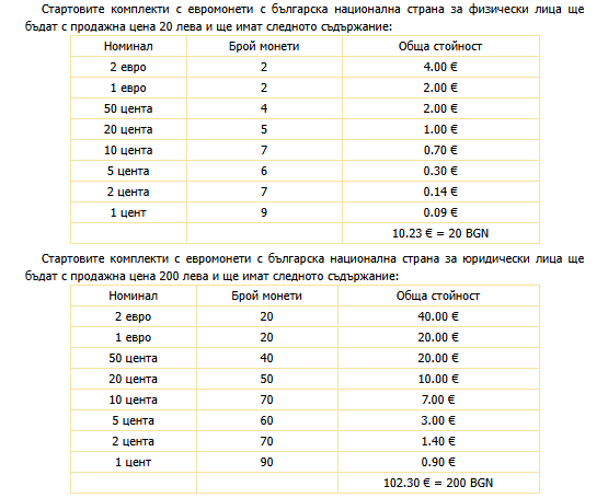 Какво съдържат стартовите комплекти с евромонети с българска национална страна?