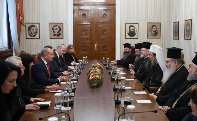 Патриархът срещна Румен Радев с следствията от окончателното правосъдно решение за опцията за вписване на паралелна „ православна черква “ и с позицията на Светия Синод по тематиката.