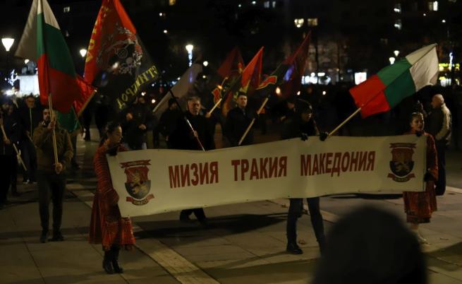 Български марш „ Долу Ньой “, проведен от младежкото Вътрешна македонска революционна организация, се организира в центъра на София, съобщи кореспондент на БГНЕС.