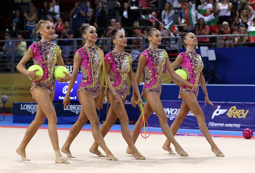 Симона Дянкова, Елена Бинева, Лаура Траатс, Мадлен Радуканова и Стефани Кирякова събраха общ брой от 42.050 точки, откакто получиха оценки 19.700 на пет обръча и 22.350 на три топки и две въжета.