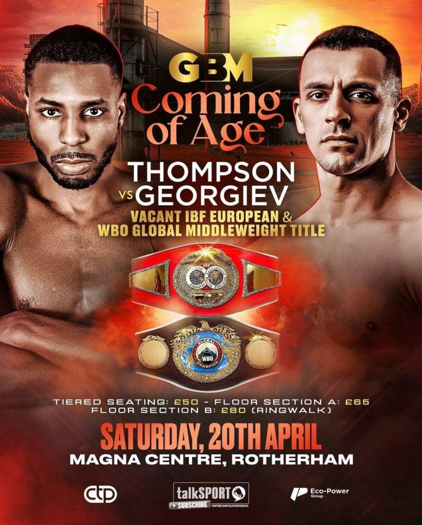 Българският боксьор Владимир Георгиев ще се качи на кръга в Родъръм, Англия на 20 април (събота) в спор за европейската купа на IBF и световната купа на WBO в междинна категория, а противник на нашето момче в 10-рундовия конфликт ще бъде британецът Шакийл Томпсън.