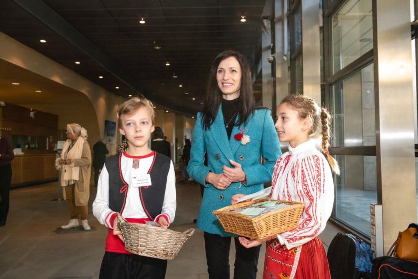 Българският еврокомисар Мария Габриел дружно с деца от българската секция на Европейското учебно заведение в Брюксел раздаваха тази заран мартеници на входа на Европейската комисия в Брюксел.