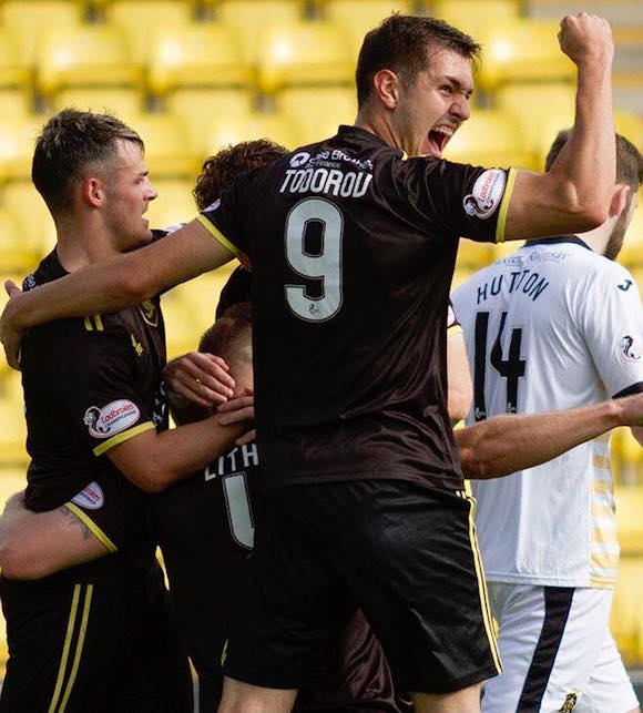 Българският нападател на Ливингстън Николай Тодоров продължава със мощните си изяви на Острова. През уикенда роденият в Плевен гений записа цялостни 90 минути при успеха с 2:0 като хазаин на Дънди Юнайтед. Първия час игра Тодоров прекара в центъра на защитата, където още веднъж му бе гласувано доверие от мениджъра Дейвид Хопкин. Четвърт час откакто бе пратен на нормалната си позиция - на върха на офанзивата, младият голаджия се отблагодари с попадение в противниковата врата. Представянето му не остана неусетно от критиците на Острова и Николай още веднъж откри място в Идеалния тим на кръга паралелно до играчи от грандовете Рейнджърс и Селтик.