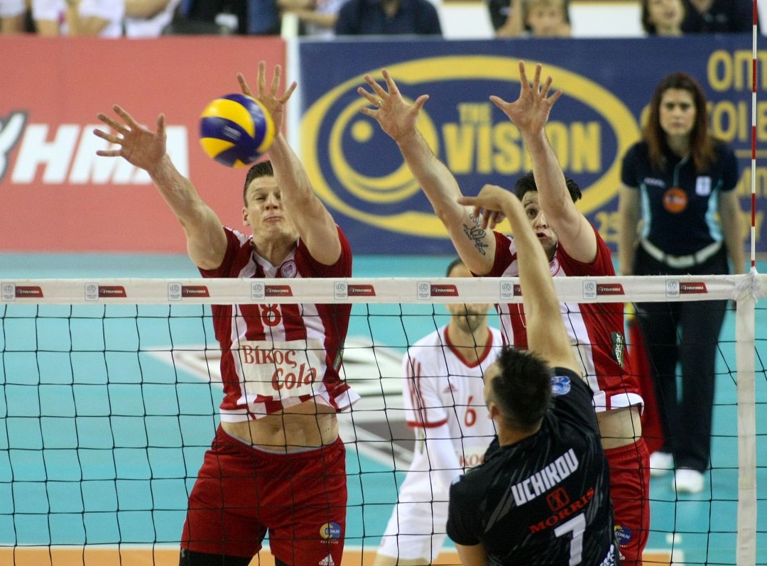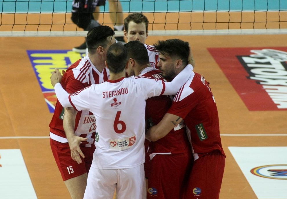 Българският посрещач Тодор Алексиев и отборът на Олимпиакос (Пирея) са на победа от купата в гръцката Волей лига, откакто победиха изрично ПАОК (Солун) и Николай Учиков с 3:0 (25:19, 25:23, 25:21) във втория заключителен мач посред им.