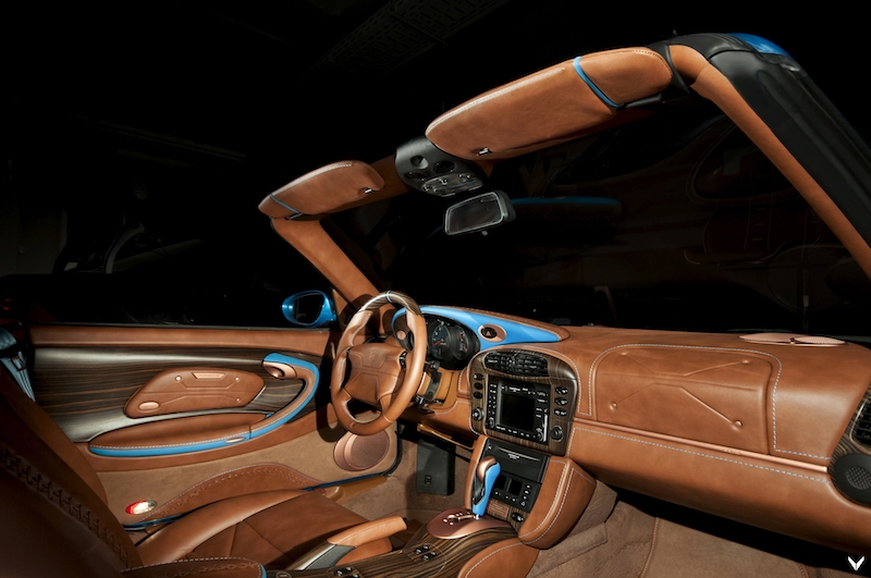 Фини елементи, завършващи плана, са металната значка с V логото в обръча на кормилото, капсите над жабката и в седалките, боядисани в специфичния цвят, дружно с табелките на седалките ‘PORSCHE BY VILNER’. Стелките и сенниците също не са останали недокоснати: първите са с кожени вложки и кантове, до момента в който частите при рамката на предното стъкло са композиция от фина кафява кожа и сини ленти. Разбира се Vilner са положили и железна табелка с името на плана и притежателя.