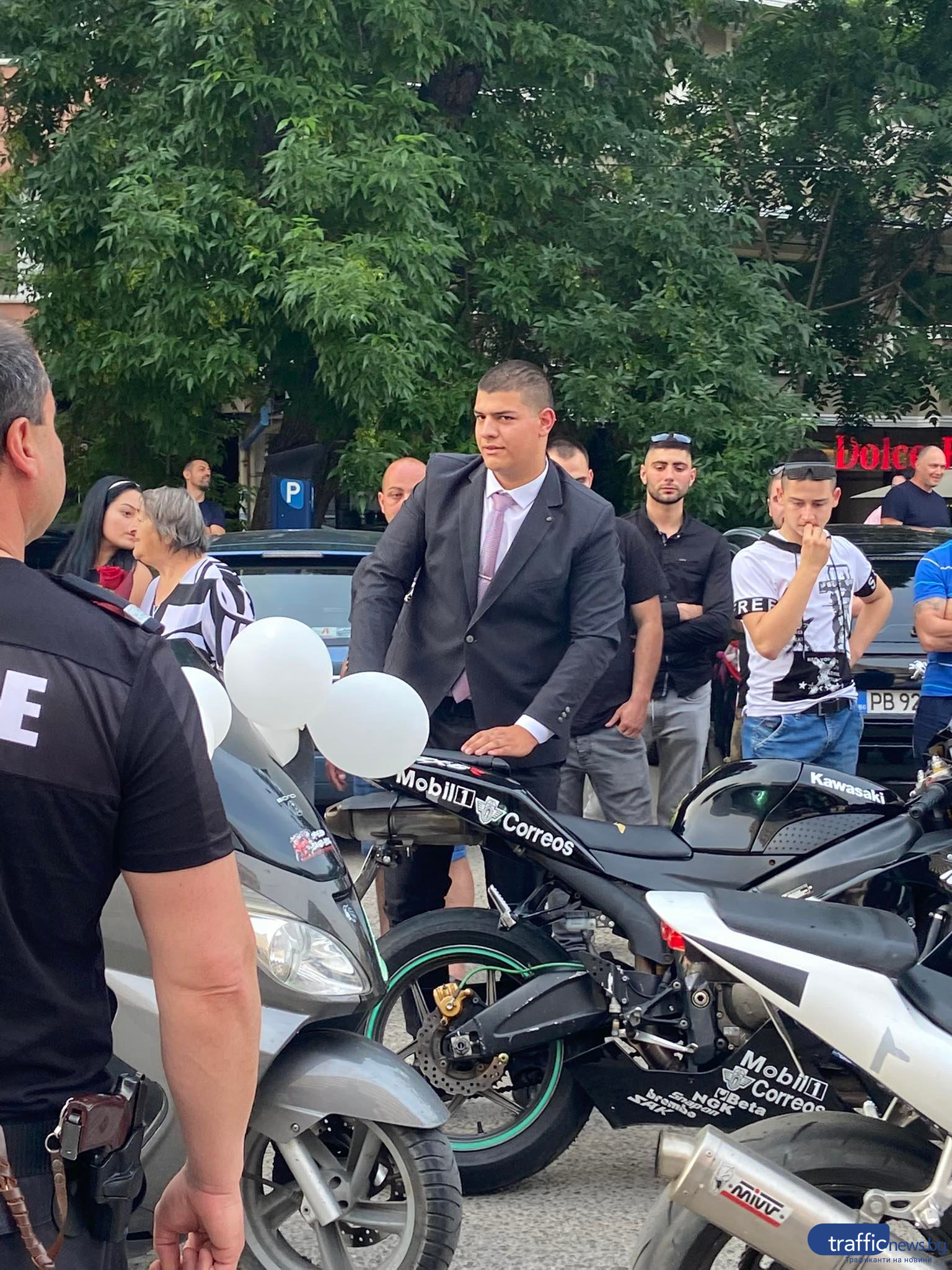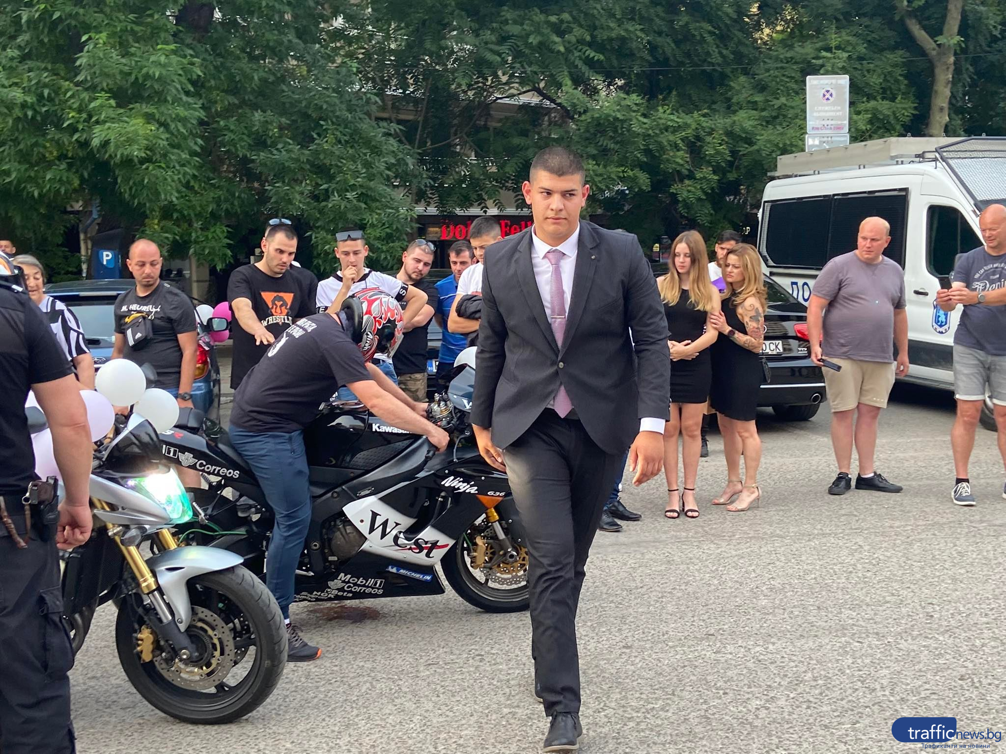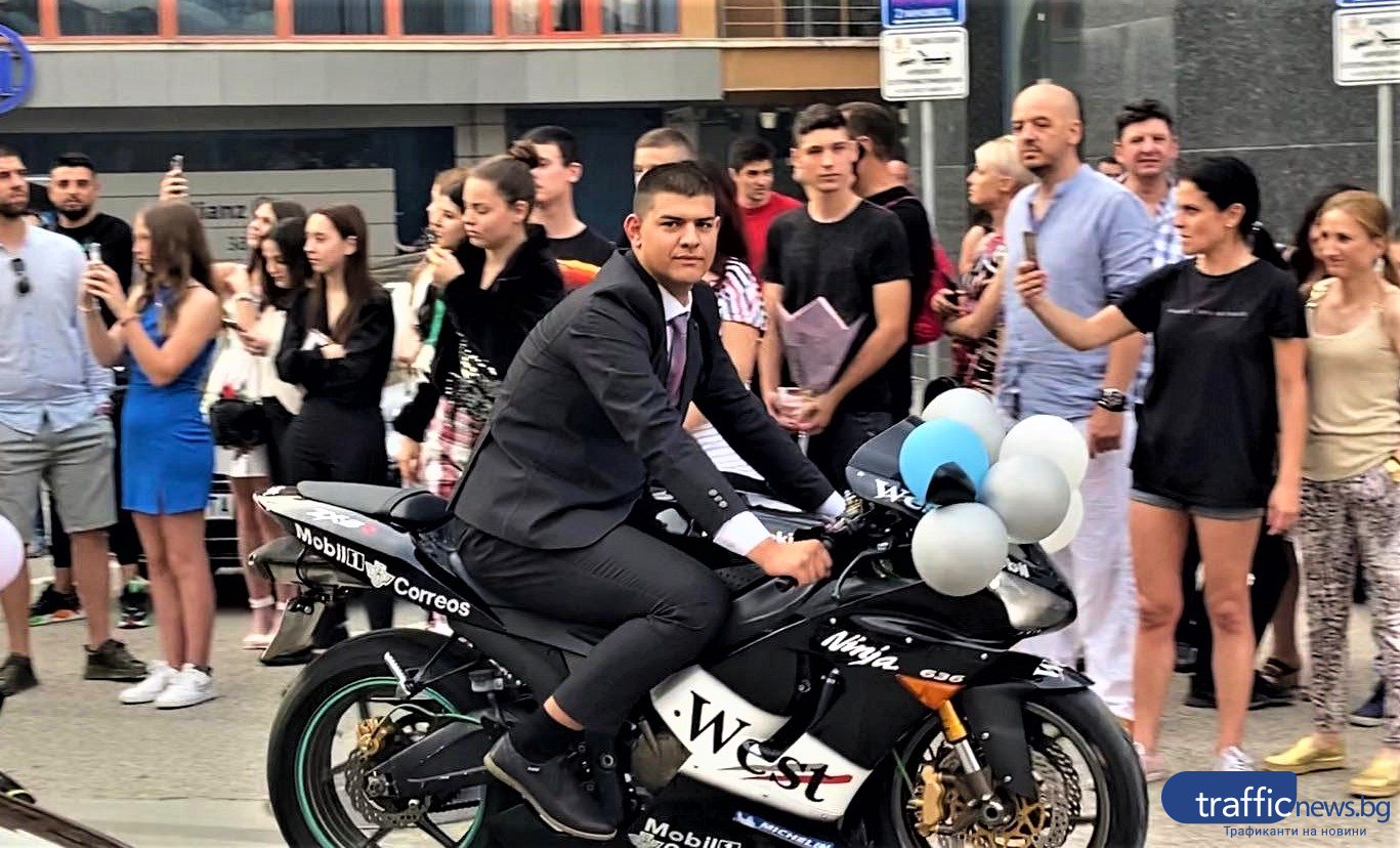 Със зрелищно шествие и плач на мотори дойде един от зрелостниците на строителната гимназия. Атанас Колев, съпроводен от още 10 мотора, притегли вниманието на многочислените зрелостници и техните близки с шумно и впечатляващо мото шоу, което прикова погледите на всички.