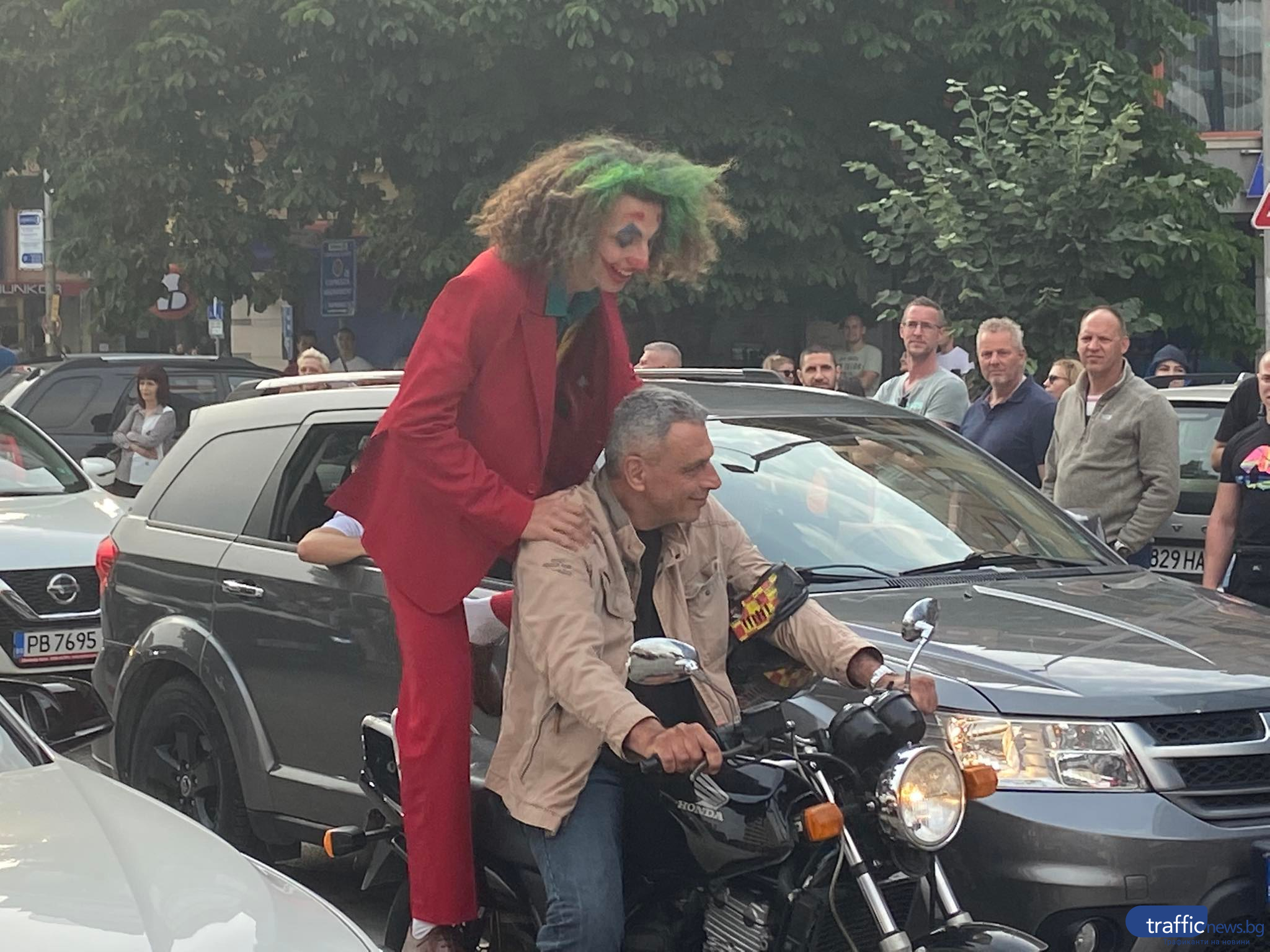 Друг дванадесетокласник пък показа извънредно ексцентрична визия, като дойде гримиран като известния комикс воин - Жокера, още веднъж яхнал мотор.