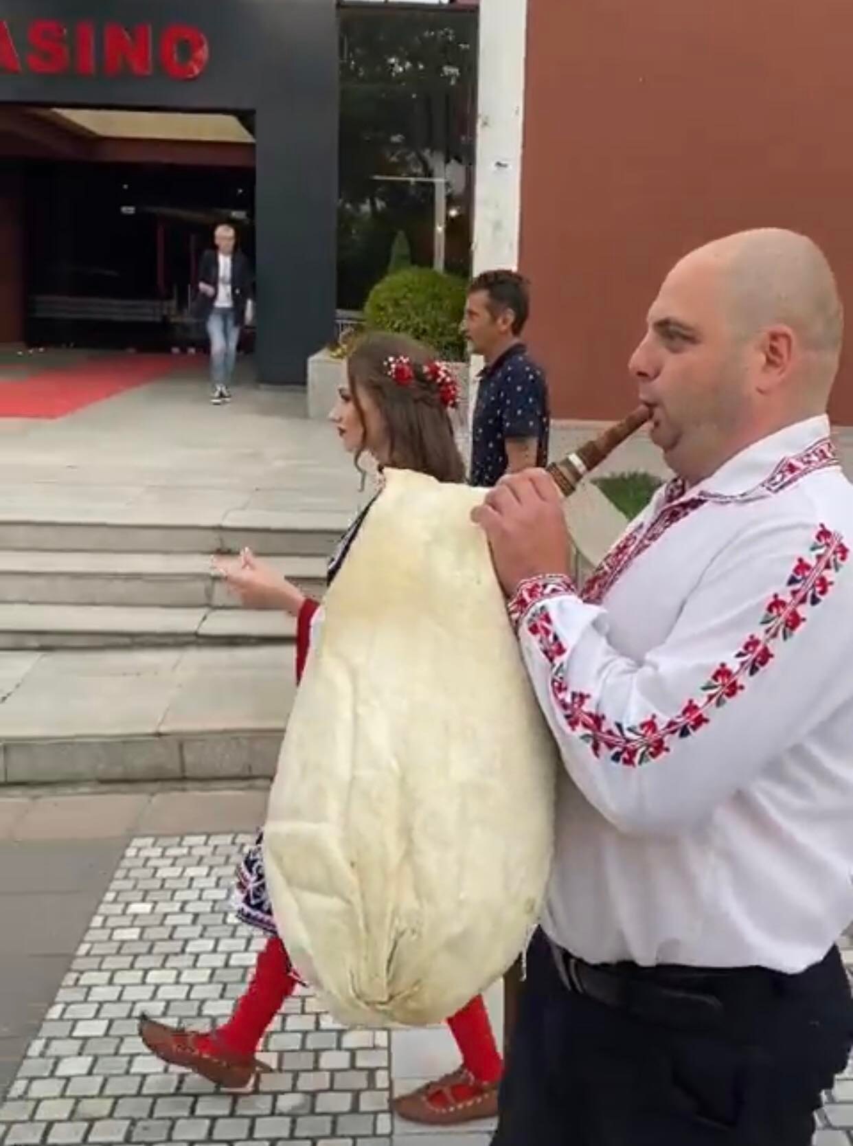 Абитуриентката Петя Вулджева от Професионалната гимназия по архитектура, строителство и геодезия „ Арх. Камен Петков “ (ПГСАГ) впечатли зрелостници и родители пред Grand Hotel с появяването си на бала. Младата дама дойде облечена в шопска носия под звуците на тъпани и гайди.
