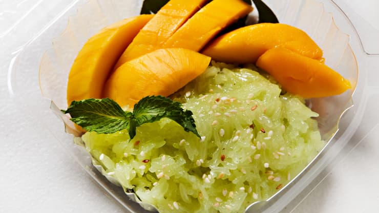 Снимка: Лепкавият ориз с манго е елементарен, само че прочут тайландски десерт, подготвен с леплив ориз, кокосово мляко, зряло манго и фасул мунг | Източник: Getty ImagesТези, които желаят да отпразнуват пътуването до Банкок с усет, могат да го създадат в оживената конюнктура на хотел Mia. Изисканото меню за дегустация включва конфи тресчица с муселин от гамбас и миди, както и морски миди от Хокайдо със сорбет от ябълки и копър.Ако към момента има свободно място, последният щрих от тайландска храна може да се направи в Mae Varee, на кръстовището на „ Сукхумвит роуд “ и „ Сукхумвит 55 “. Това е плодов магазин, който е прочут с това, че сервира типичен тайландски десерт – леплив ориз с манго. В момента трой заема 10-то място от 428 десертни заведения в Банкок. Източник: infostock.bg