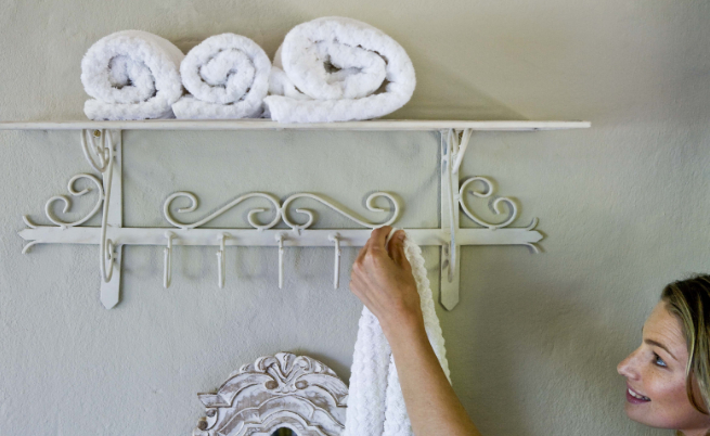 - Вместо да скривате кърпите в шкафчета, които заемат в допълнение място, наредете ги върху лавици, закачени за стената. Така цветните ви пухкави хавлиени кърпи ще се трансфорат и в част от интериора.