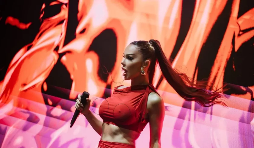 Певицата, която с изключение на с шлагерите е известна и с провокациите си от сцената, се появи в алена рокля, която сигурно не остави място за въображение. А на показ пред всички лъснаха зърната й.