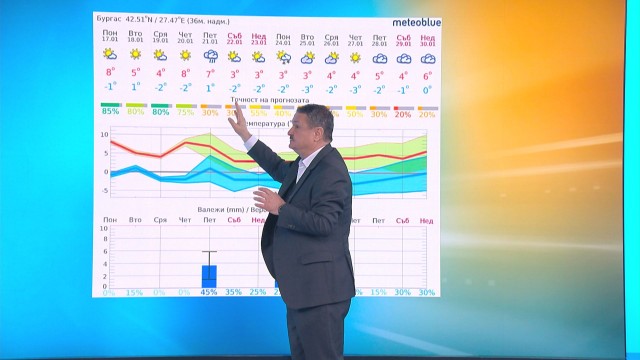 До петък оптималните температури ще са към 7 градуса, до момента в който с нахлуването на студения фронт в края на седмицата те ще станат минусови.
