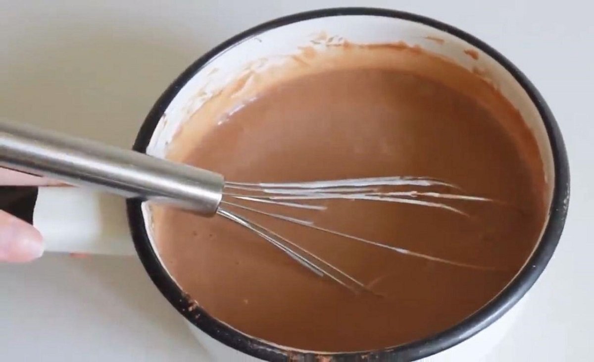 След това вземете тенджера и я сложете на котлона. Налейте мляко там, прибавете захар и желатина, разтворен във вода. И също по този начин прибавете какао. Загряваме масата и разбъркваме непрестанно, до момента в който желатинът се разтвори изцяло. Не можете обаче да го кипнете, тъй като желатинът ще загуби свойствата си. Добавете заквасена сметана към хомогенна шоколадова маса и разбъркайте.