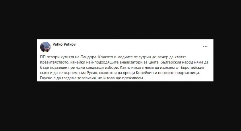 Бащата на премиера се намеси в огромната политика и тематиките на деня пред България. Петко Петков разгласява пост в отбрана на държавното управление против медийни офанзиви, които целят нови избори, разбираме от мнението на Петков-старши.