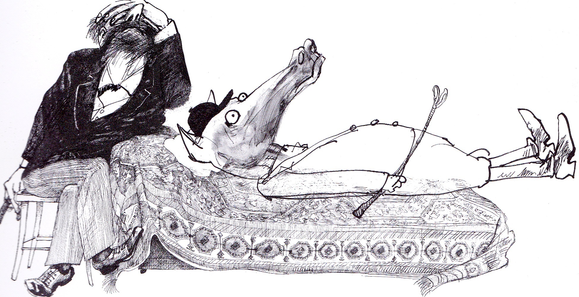Бащата на психоанализата Зигмунд Фройд е занаятчия на психическите матафори. Кой от актуалните илюстратори би могъл да му съперничи в това и да пресъздаде най-точно странния му свят? Ралф Стедман, несъмнено. Джони Деп назовава обичания си художник и другар „ цялостен умопобъркан ”. Самият Стедман е още по-ясен - „ аз съм просто естествен урод ”.