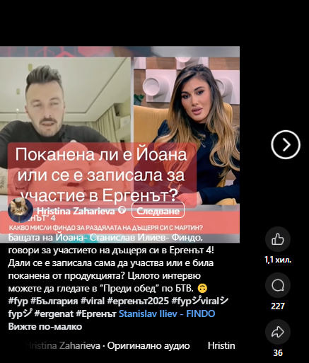" Приемам постъпката на Мартин като нож в гърба. За мен това беше изменничество ", съобщи Финдо без да се церемони. Припомняме, че нееднократно по време на диалозите сред Йоана и Мартин в предаването, тя неколкократно загатваше какъв брой доста родителите ѝ харесвали Мартин.